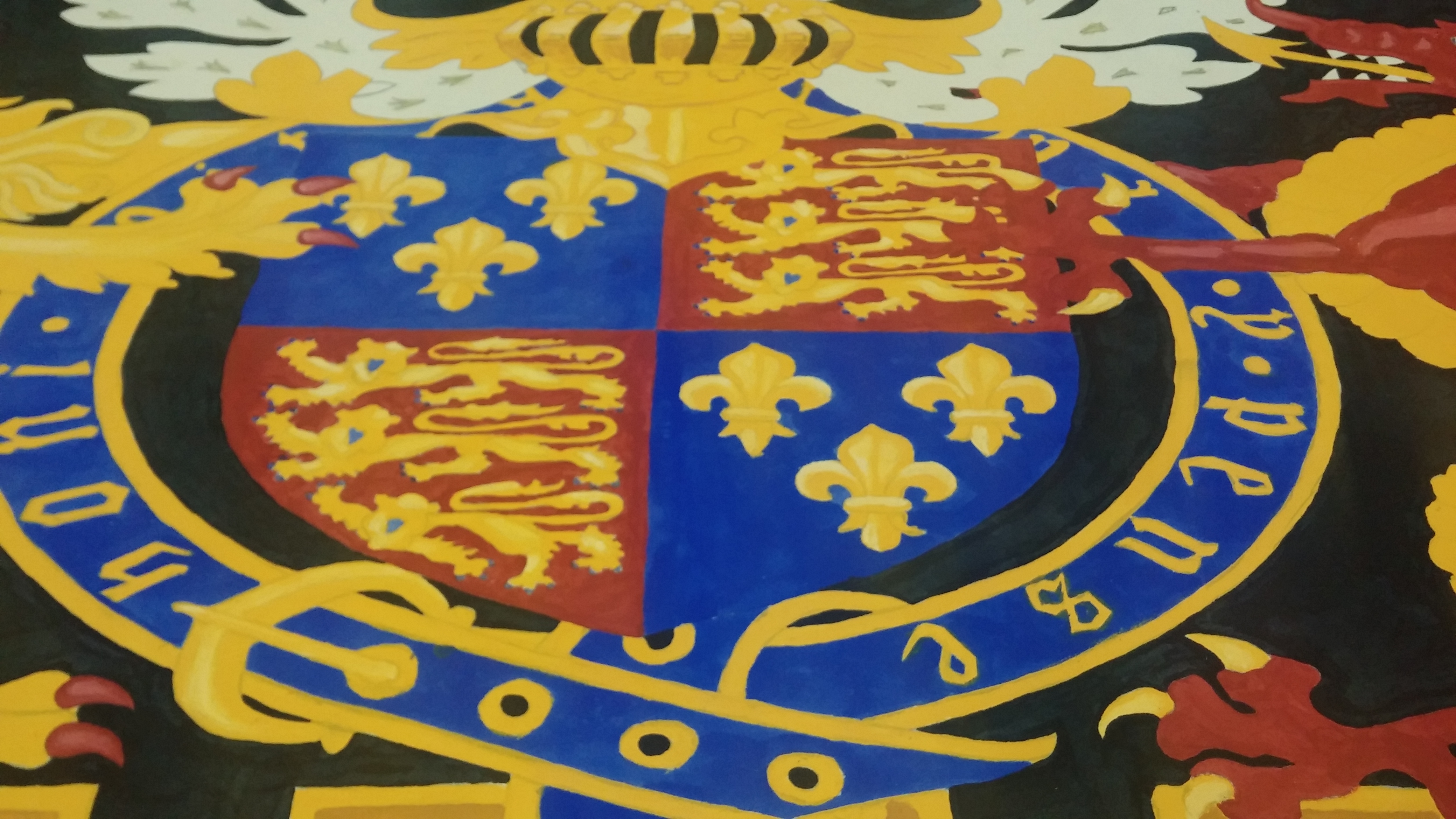 A Man for All Seasons Wide view of Stage Left Carved foam with 3D texturing Painted tapestry Inset of painted tapestry Henry VIII Crest Inset of Crest A Man for All Seasons Scenic Artist NextStop Theater Company Designer: Joe St. Germain